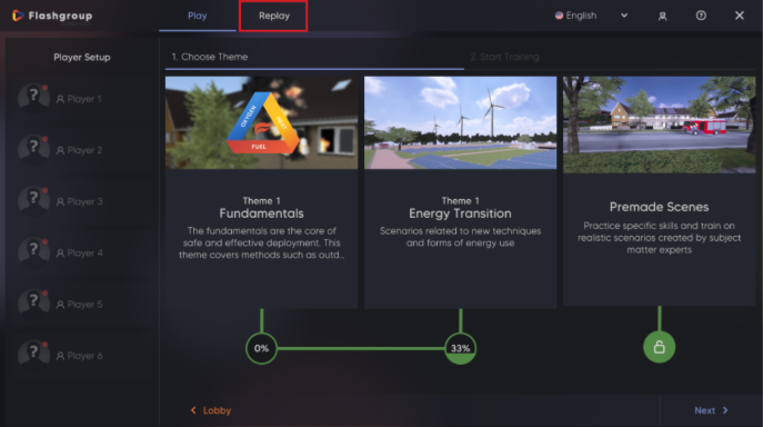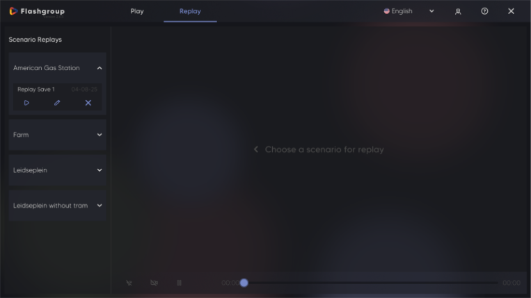 When opening the replay screen, the operator will be met with a bar on the left listing all saved replays and their respective locations they were played in. Here you can play, rename and delete the replays.