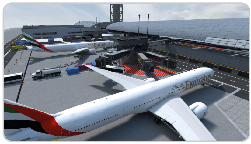 This environment is modeled after Dubai International Airport, with a specific focus on Terminal 3. It offers a realistic setting for airport-related emergency and safety training scenarios.