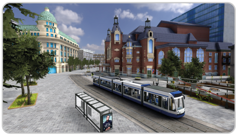 This scene is a highly accurate recreation of Leidseplein, a well-known square in the heart of Amsterdam. Built to real-world scale, it focuses on the central area of the square, featuring tram lines, roadways, and several recognizable buildings that enhance realism and immersion during training.