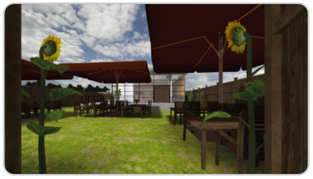 This café is situated in the heart of the countryside, offering visitors a peaceful and scenic escape from urban environments. Inside, guests will find several comfortable tables arranged to create a warm and welcoming atmosphere. Outside, there is abundant seating surrounded by natural greenery, making it an ideal place to relax and enjoy the fresh air.
