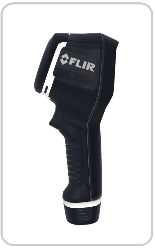 You can pick it up by reaching for it, which will highlight it, and pressing the trigger button on your controller. It will then be put in your hand. Then it’s just a matter of pointing it at the place you want to check for a possible fire and look at the screen.