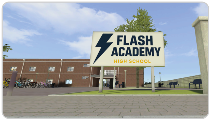 The school property includes multiple classrooms, science labs, a cafeteria, a gymnasium with sports fields, and a teachers’ lounge, providing a versatile environment for diverse training scenarios.