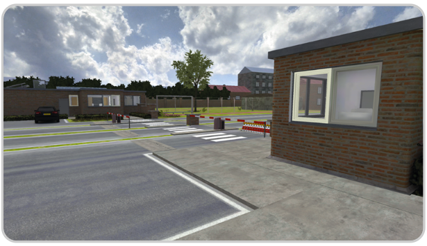 This environment is inspired by high-security facilities such as those used by the Royal Netherlands Marechaussee (KMAR). The scene includes a security building equipped with surveillance cameras and built to accommodate a crew of 3–4 personnel. The roof is accessible to players and features solar panels, adding modern energy components and additional tactical possibilities.