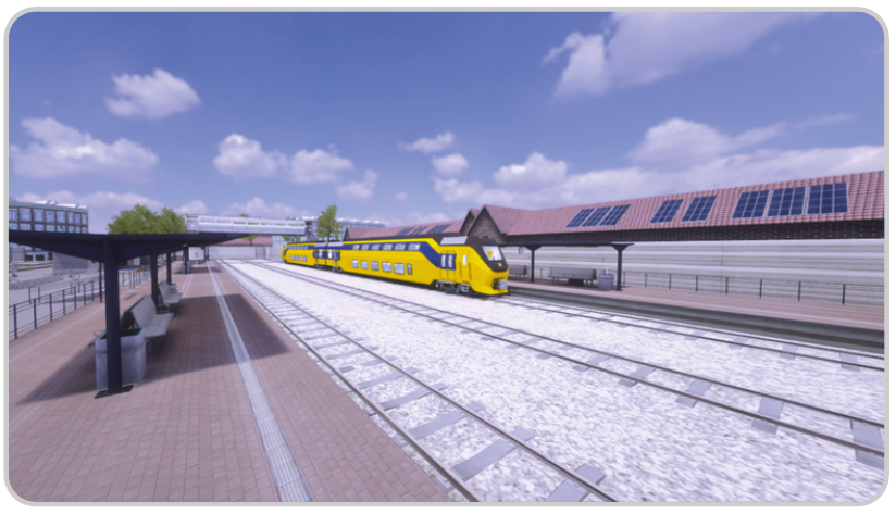 The environment offers views of both urban edges and Dutch farmlands, reflecting its transitional location. While primarily inspired by Dutch train stations, some design elements were influenced by American stations, which is evident in the details and objects placed on the platforms.